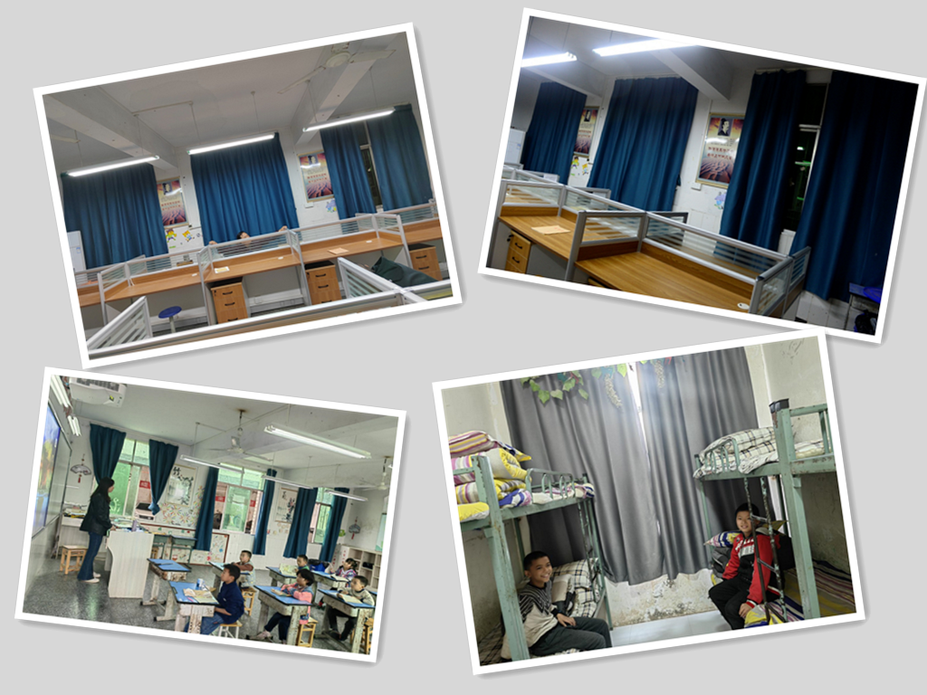 ? ? ??咸隆小學是一所農村寄宿制小學,學校雖小,可是學生生活愉快,學習上進。然而,學生上課的教室窗戶窗簾因破損嚴重,一到熱天,陽光直射,靠窗坐的學生只能頂著大太陽,以紅撲撲的臉蛋堅持用心上課,同時還要接受因強光導致黑板反光不能看清黑板上筆記的困擾。刺眼的陽光透過學生宿舍玻璃上那薄薄的窗花紙讓寄宿的孩子們無法保障有充足的睡眠。